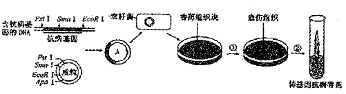 转基因抗病香蕉的培育过程如图所示。质粒上有PstⅠ、SmaⅠ、EcoRⅠ、ApaⅠ等四种限制酶切割位点。请回答: