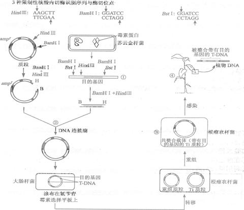 34.(江苏)(7分)苏云金杆菌(Bt)能产生具有杀虫能力的毒素蛋白。下图是转Bt毒素蛋白基因植物的培育过程示意图(