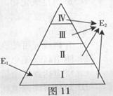51.(广东理科基础)图11为某一生态系统的能量金字塔,其中I、Ⅱ、Ⅲ、Ⅳ分别代表不同的营养级,E1、E2代表能量的形式。下列叙述正确的是