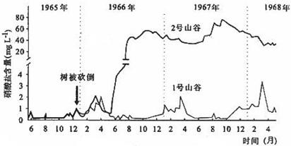 (4) 1966年5月后,2号山谷溪水中的硝酸盐含量急剧升高,主要的两个原因是 。