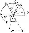 [例5]如图所示,将一个重物用两根等长的细绳OA、OB悬挂在半圆形的架子上,在保持重物位置不动的前提下,B点固定不动,悬点A由位置C向位置D移动,直至水平,在这个过程中,两绳的拉力如何变化?
