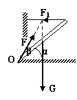 解析:地面对杆的作用力是地面对杆的弹力和擦力的两个力的合力,这样杆共受三个彼此不平行的作用力,根据三力汇交原理知三力必为共点力,如图所示,设F与水平方向夹角为β,根据平衡条件有:Fsinβ=G,Fcosβ=F1,解得F=