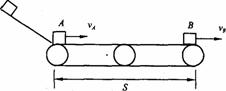 [例3]如图所示,水平传送带A、B两端相距S=3.5m,工件与传送带间的动摩擦因数μ=0.1。工件滑上A端瞬时速度VA=4 m/s,达到B端的瞬时速度设为vB。