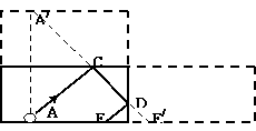 小球沿AC方向运动至C处与长边碰后,沿CD方向运动到D处与短边相碰,最后沿DE回到出发边。经对称得到的直线A/CDE/的长度与折线ACDE的总长度相等。