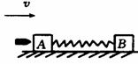 [例2]如图所示,一轻质弹簧两端各连接一质量均为m的滑块A和B,两滑块都置于光滑水平面上.今有质量为m/4的子弹以水平速度V射入A中不再穿出,试分析滑块B何时具有最大动能.其值为多少?