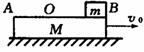 [例5]如图所示,质量为M长为L的木板(端点为A、B,中点为O)置于光滑水平面上,现使木板M以v0的水平初速度向右运动,同时把质量为m长度可忽略的小木块置于B端(它对地初速为零),它与木板间的动摩擦因数为μ,问v0在什么范围内才能使小木块m滑动到OA之间停下来(即相对木板静止)?
