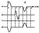 [例2]一波源在绳子的左瑞发生波P.另一波源在同一根绳子右端发生波Q,波速为lm/s.在t=0时绳上的波形如图中的a所示,根据波的叠加原理,以下判断正确的是( )