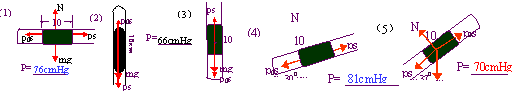 取水银柱为研究对象,进行受力分析,列平衡方程得Ps= P0S+mg;所以p= P0S十ρghS,所以P=P0十ρgh(Pa)或P=P0+h(cmHg)