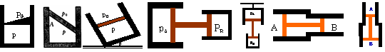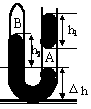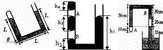 [例2]在竖直放置的U形管内由密度为ρ的两部分液体封闭着两段空气柱.大气压强为P0,各部尺寸如图所示.求A、B气体的压强.