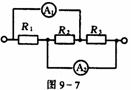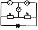 [例12]如图所示,四个相同的表头分别改装成两个安培表和两个伏特表。安培表A1的量程大于A2的量程,伏特表V1的量程大于V2的量程,把它们按图接入电路,则