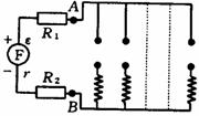 [例12]将一个标有“24 V、48 W’的电灯接在电动势ε=36 V.内阻r=2 Ω的直流电源下使用,今有“2Ω、50W”的定值电阻R若干只可供选用,请设计两种简单电路使电灯正常发光: