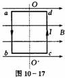 解析:为便于正确找出力臂,应将题中所给的立体图改画成平面俯视图,如图10-17所示,设线框ab边长为11,cd边长为12,并设竖直转轴过图中O点(O点为任选的一点) ,ao长lac,bo长lbo,则lac+lbo=l1.为便于分析,设电流方向沿abcda.