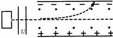 解析:粒子在电场中运行的时间t= l/v;加速度 a=qE/m;它作类平抛的运动.有