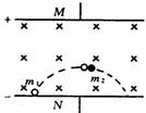 平衡时,有qE=mg……①,a、b相撞合为一体时,质量为3m,电量为-3q,速度为v,由题意知处于平衡状态,重力3mg,电场力3qE均竖直向下,所以洛伦兹力必定竖直向上,满足3qvB=3mg+3qE……②