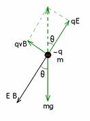 由质点受力图可得tanθ=qvB/qE,所以![]()