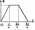 ③线框离开磁场阶段,t为2l/v--3l/v,线框磁通量线性减少,最后为零.