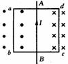 [例11]如图所示,导线框abcd与导线AB在同一平面内,直导线中通有恒定电流I,当线框由左向右匀速通过直导线过程中,线框中感应电流的方向是