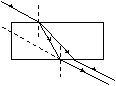 解:进入时入射角相同,折射率不同,因此折射角不同,两束光在玻璃内不再平行,但从下表面射出时仍是平行的。射出时两束光之间的距离根据玻璃砖的厚度不同而不同,在厚度从小到大变化时,该距离先减小后增大,有可能和入射前相同(但左右关系一定改变了)。