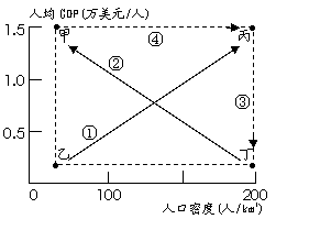 读甲乙丙丁四个国家的有关特征图,回答21-22题。
