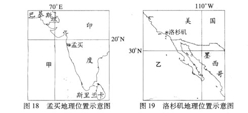 A.孟买夏季高温多雨 B.洛杉矶夏季高温多雨 C.孟买冬季高温少雨