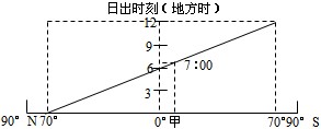读某日150°E经线上日出时刻随纬度的变化示意图,回答7-9题。