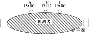 10.(06盐城二调)读我国东部某地二分二至日时日落位置及北京时间示意图,回答下列问题。