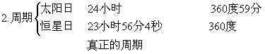 (4)由于地球每天公转东进59分,即图中的角E1SE3的度数。课本中的示意图实际是夸大了该角度。若按照严格的度数画图,就会发现,E1PS线和E2P线距离很近,该恒星距地球十分遥远,这种误差可以忽略,所以图中的三颗恒星是一颗恒星。角E1SE3和角SE3H是内错角,因此一个太阳日,地球实际自转了360度59分,多出的59分,在时间上要用3分56秒。恒星日是地球自转的真正周期。