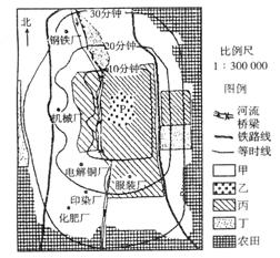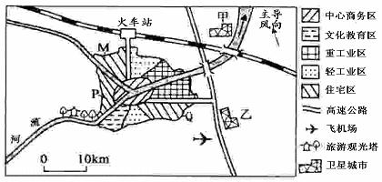 (3)拟在甲、乙两处规划建设高新技术工业城和石油化工城两座卫星城市。石油化工城应建在 处,理由是 。