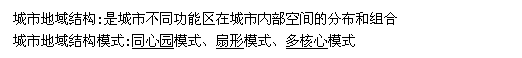 城市内部空间结构也称城市地域结构。城市地域结构与城市功能分区是两个既有区别又有联系的概