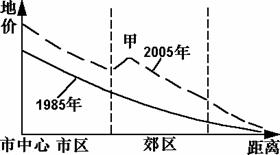 A.市区地价较过去小幅下降 B.交通通达度提高 C.郊区人口向市中心集中 D.城市规模缩小