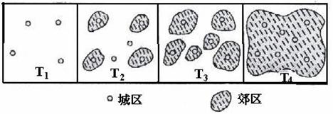 A.T1-T4说明用地规模扩大,城市人口增多 B.T1-T4反映了城市化过程 C.T1-T4的过程称为逆城市化过程 D.T1-T4可以看出城市经济畸形发展