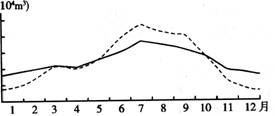 图2为“某河流修建水库前后径流量变化示意图”图中虚线为建水库前,实线为建水库后,读图回答:修建水库可以
