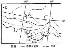 C. 位于板块交界地带,多地震 D.图中甲处等降水量线密集的主要影响是地形