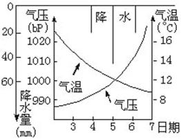 读图13“江苏如皋5月5日前后几天的天气变化资料统计图”,完成51-52题:
