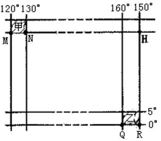 A.500km B.800km C.1000km D.1300km 3、下图为局部经纬网图,甲、乙区域所跨的纬度相等,MN的实际距离约为QR的一半。下列有关甲、乙两区域地理事象的叙述,正确的是