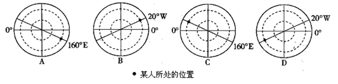 A.甲区域的实际范围是乙的四分之一 B.在乙区域,正午太阳高度增大时,白昼时间增长 C.甲区域陆地自然带为亚寒带针叶林带 D.乙区域的气温年较差比甲区域大 4、某人面北而立,左为东半球,右为西半球,前为热带地区,后为温带地区,则其位置是: