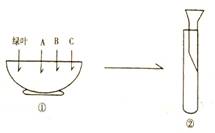 (1)甲、乙两同学取5g叶片经 在②中未得到理想的滤液,而分别得到两种不同颜色的溶液(见下表中),经分析,可能是在①过程中,某试剂(或成分)未添加或是错加的缘故。试在下表中作出判断(添加为+,未添加为-,并分析原因。