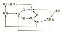 10.右图是一个较为理想的人工生态系统。鸡粪中含有较多的营养物质,未被利用,干制后添加其他饲料可以喂猪。猪粪可以用来"笼养蝇蛆",又可作为农田肥料,蝇蛆还可用来喂鸡和养蝎子。请分析说明: