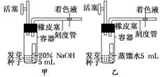 4.下图是测定发芽种子的呼吸类型所用装置(假设呼吸底物只有葡萄糖,并且不考虑外界条件的影响),下列有关说法错误的是 ( )