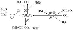 (4)进行③过程的生物,其同化作用的特点是:能够利用将NH3转化为HNO3过程中释放的 能,把 。