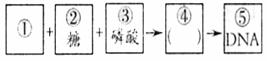 A.①表示的碱基有5种 B.②表示核糖