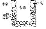 右图是一个一次性加热杯的示意图。当水袋破裂时,水与固体碎块混和,杯内食物温度逐渐上升。制造此加热杯可选用的固体碎块是