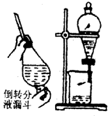 (1)将溶液注入分液漏斗中,溶液总量不超过其容积的3/4,如图所示,两手握住分液漏斗、倒转分液漏斗并反复、用力振荡