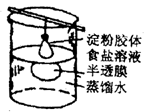 胶粒与溶液中的溶质分离。例:用渗析的方法除去淀粉胶体中的NaCl |