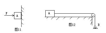 2、如图11物体A在水平力F作用下,静止在竖直墙壁上。当水平力减小为F/2时,物体A恰好沿竖直墙壁匀速下滑,此时物体A所受摩擦力的大小