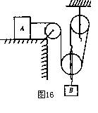 7、如图16物体A重50N,物体B重30N,物体A在物体B的作用下向右做匀速直线运动。如果在物体A上加一个水平向左的力F拉动物体A,使物体B以0.1m/s的速度匀速上升,求2s内拉力F做的功。