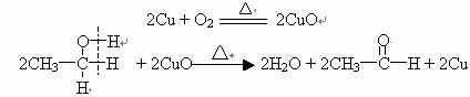 实验操作:把一端弯成螺旋状的铜丝放在酒精灯外焰中加热,使铜丝表面生成一薄层黑色的CuO,立即把它插入盛有乙醇的试管里,这样反复操作几次。