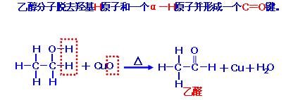 [注意]1、生成物叫乙醛,特征基团是-CHO,乙醛是无色、具有刺激性气味的液体;密度比水小;易挥发;易燃烧;能与水、乙醇等互溶。易被氧化制乙酸,也可以被还原制乙醇。