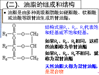 [过渡] 油脂是人类的主要食物之一,也是一种重要的工业原料,我们日常食用的猪油、牛油、羊油、花生油、豆油、茶油、棉籽油、油菜籽油等都是油脂。