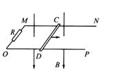 如图所示,电阻不计的平行金属导轨MN和OP水平放置,MO间接有阻值为R的电阻,导轨相距为d,其间有竖直向下的匀强磁场,磁感强度为B.质量为m、电阻为r的导体棒CD垂直于导轨放置,并接触良好.用平行于MN的恒力F向右拉动CD,CD受恒定的摩擦阻力.f,已知F>f.问: